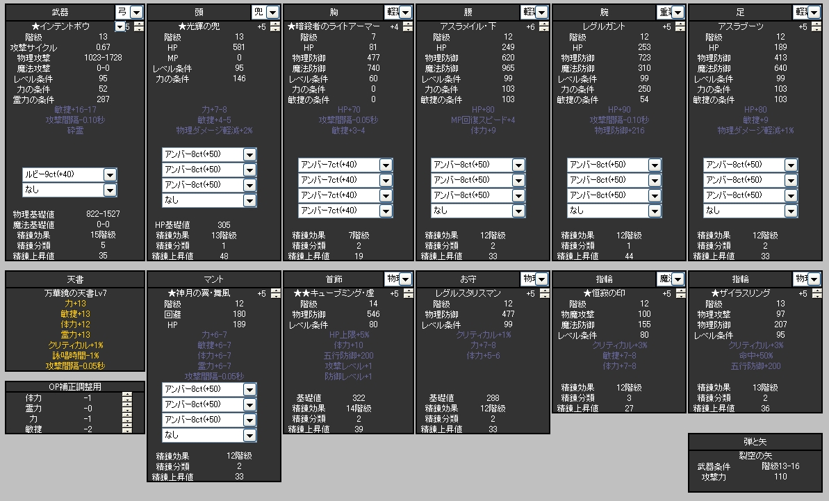 こちらの方が魔導の計算式を出してくれています。弓でやったところいい数値がでなかったので、係数っぽいところを色々いじってみましたが納得のいく数値は出ず…まだまだ完成は遠し…